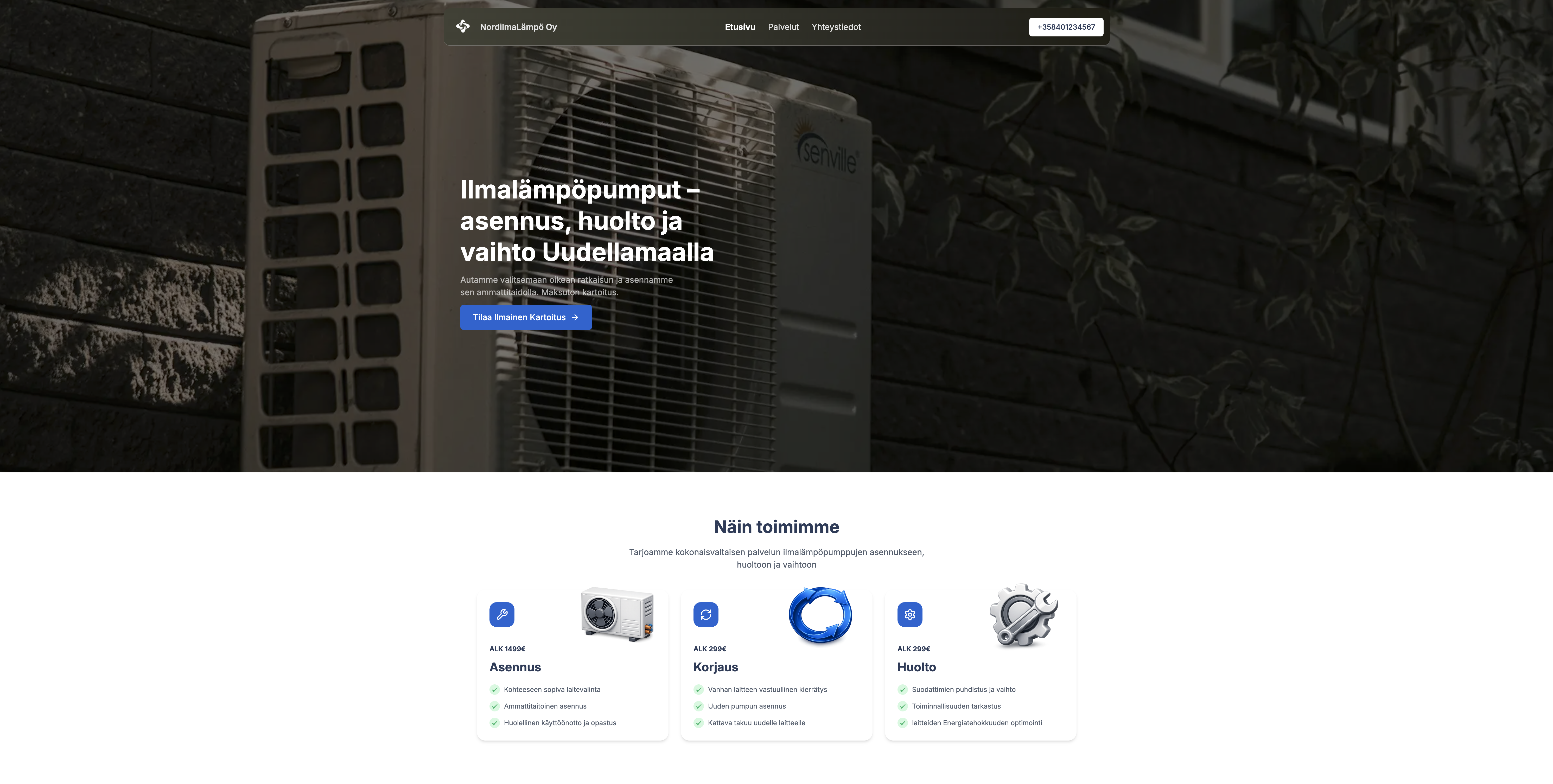 A modern, fast corporate website built for an HVAC company in Espoo.
